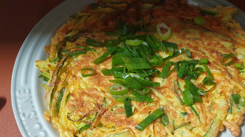 애호박 반개에 계란 3개 비율이라고 유튜버가 말했으나, 애호박 반개를 남기면 무조건 썩어 버릴게 자명하다. 무조건 1개 다 부쳐낼 생각이었고 계란 6개를 깨 넣기에는 소중한 계란.. 그래서 계란 3개에 부침가루로 채썰어진 애호박들을 서로 붙여봤다. 기름을 넉넉히 두르는건 부침요리에 필수조건이다. 결과는 풍부한 계란향에 모든것이 성공적